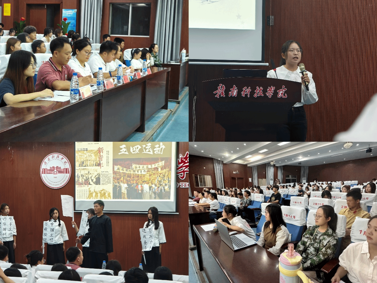 本次院级决赛共有13支参赛队伍,参赛选手分别以演说演讲、情景演绎、案例讲解、视频互动等形式,聚焦党的初心使命、辉煌成就、创新理念、重大事件等进行团课讲述。电商241班团支部带来的话剧表演《黎明》以“五四运动”为背景,用新颖的舞台艺术形式,重现那段激情燃烧的岁月,激发同学们的爱国情怀和民族自豪感;国贸241班的张钰轩带来的团课《燃青春之火,铸共青团魂》,用凝练流利的表达强调青年有为的重要,展现了新时代青年的责任与担当。