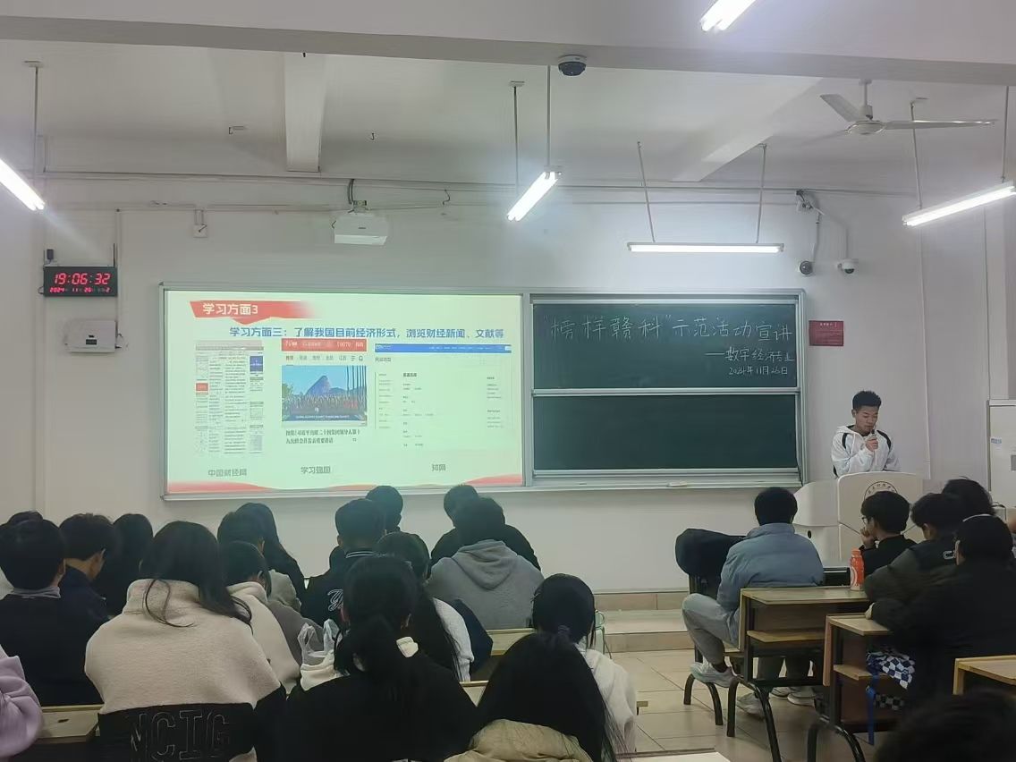 本网讯:为进一步激发同学们的学习热情,从优秀员工榜样中汲取力量,11月25日,熊猫体育举办“榜样赣科”主题宣讲活动。本次活动邀请获得2024年国家奖学金的涂传同学为大家分享自己的学习经历与感悟,2024级数字经济专业全体员工参加。
