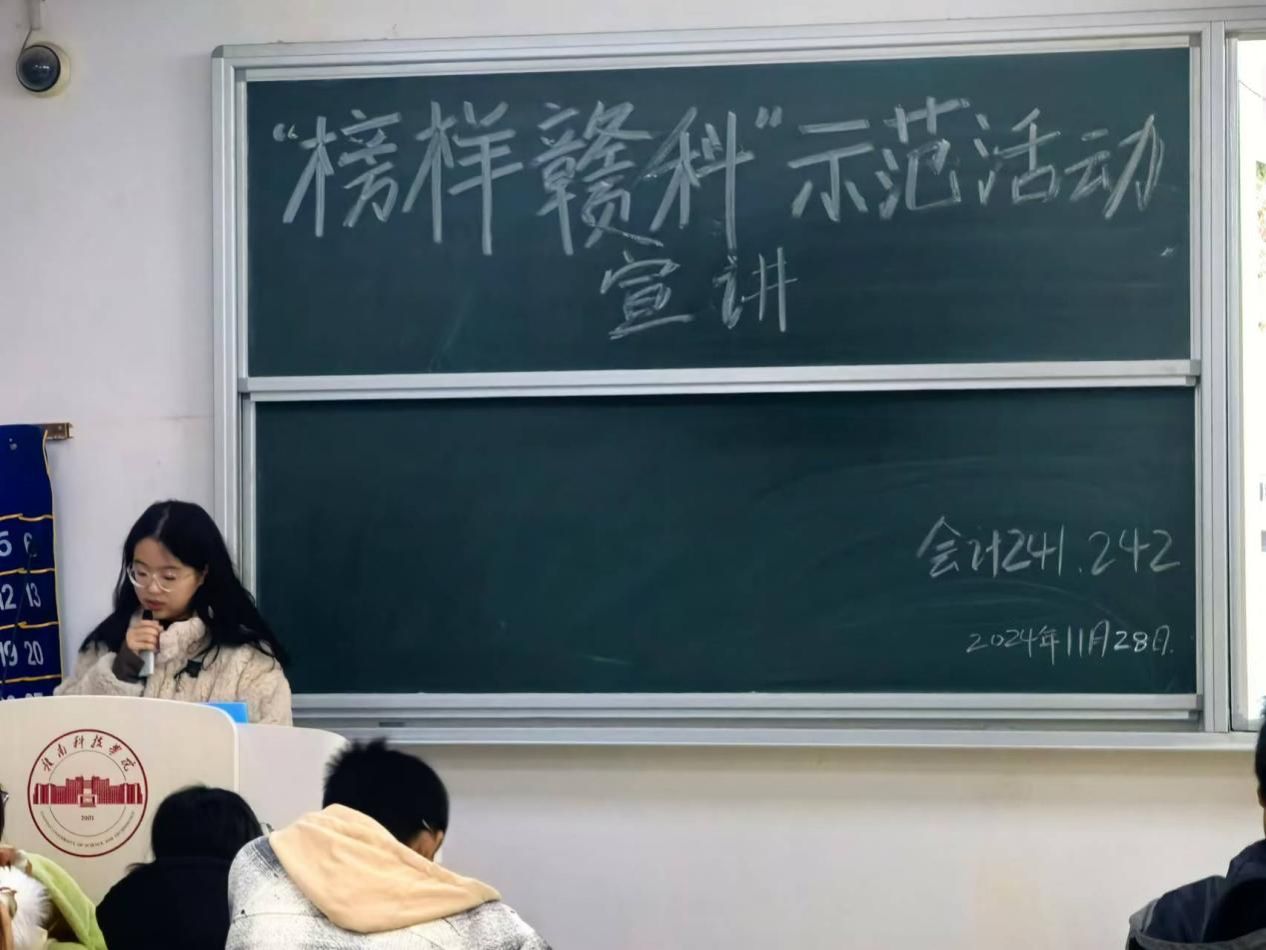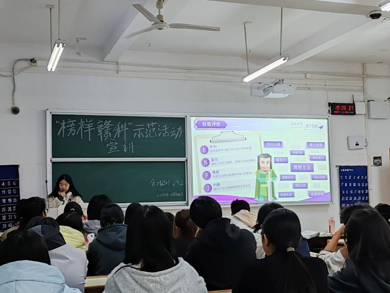 本网讯:为进一步激发同学们的学习热情,从优秀员工榜样中汲取力量,11月25日,熊猫体育举办“榜样赣科”主题宣讲活动。本次活动邀请获得2024年国家奖学金的周雅鑫同学为大家分享自己的学习经历与感悟,2024级会计专业全体员工参加。
