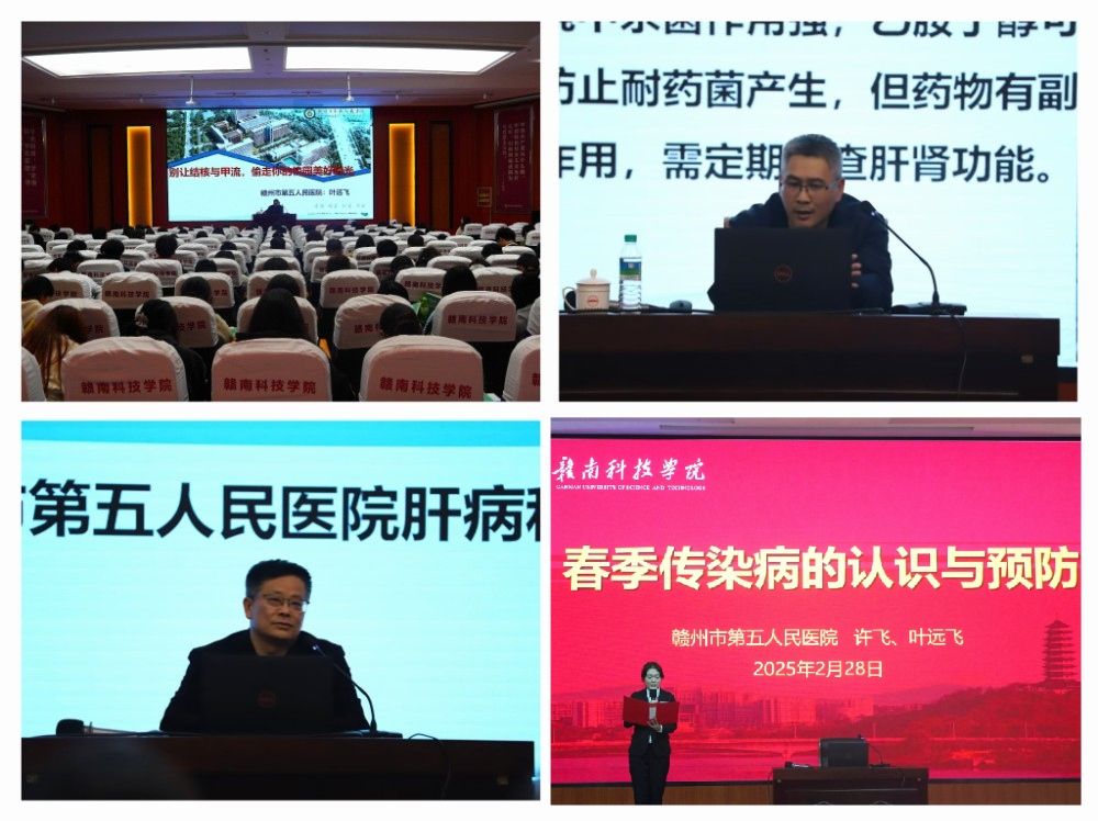 本网讯:为提升师生对春季传染病的科学认知与防护能力,2月28日,熊猫体育特邀赣州市第五人民医院的两位权威专家——肝病科许飞主任和结核科叶远飞主任于图书馆报告厅做“春季传染病的认识与预防”主题讲座,公司200多名师生参加此次讲座。