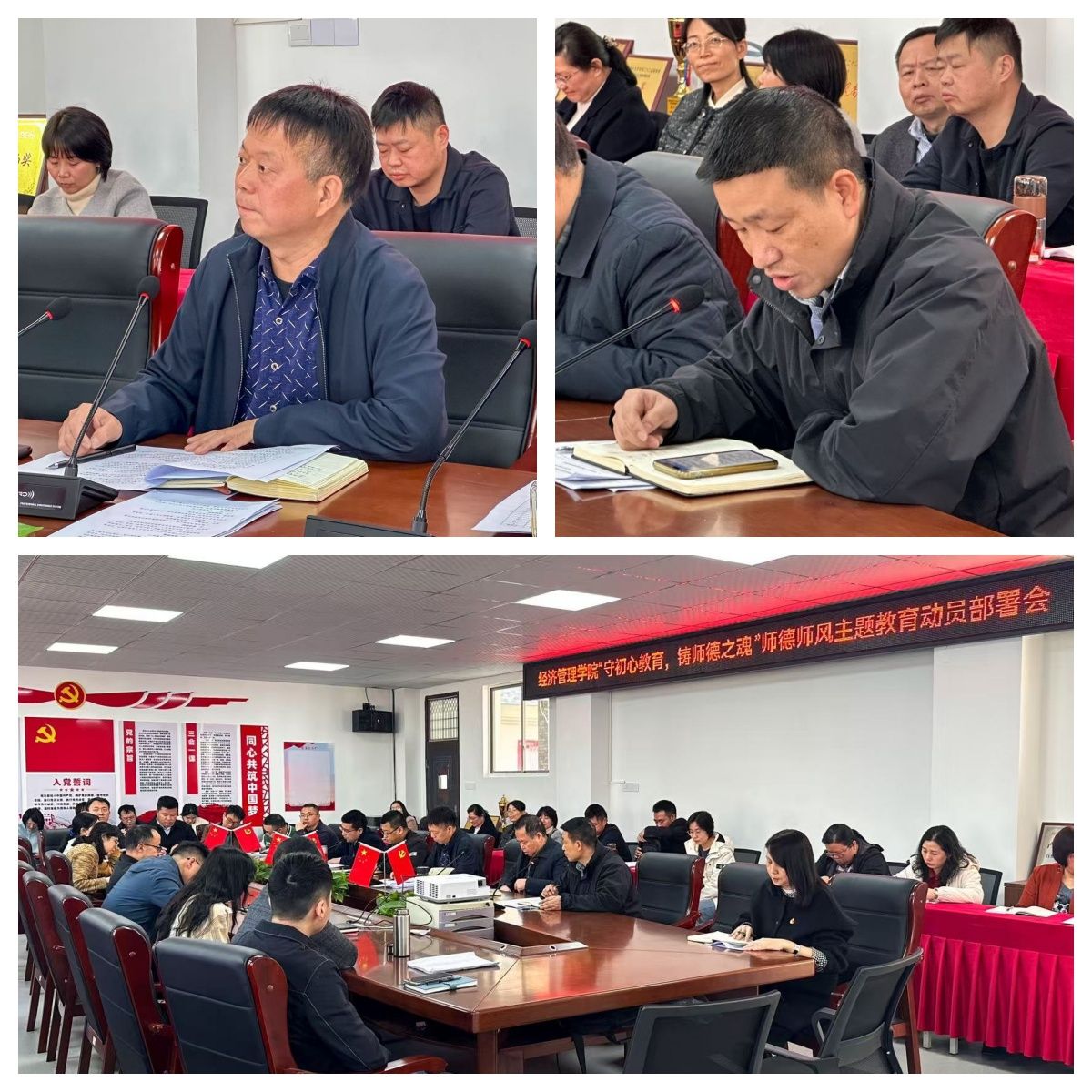 本网讯:为深入贯彻落实习近平总书记关于教育的重要论述和党的二十大和二十届二中、三中全会精神,推动熊猫体育“精益求‘经’点石成金”党建品牌里的“精益铸魂”工程建设。3月19日,熊猫体育在新民楼305会议室召开“守初心教育,铸师德之魂”主题教育动员部署会。经济管理公司党委书记肖永鸿、公司领导班子成员及全体教师参加了此次会议。会议由肖永鸿主持。