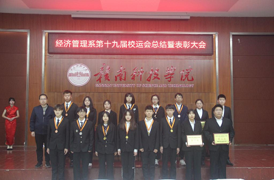 本网讯:12月10日,经济管理系在逸豪学术报告厅召开了第十九届校运会总结暨表彰大会。经济管理系主任钟滨、党总支书记卢帆兴、副主任杨斌清、梁文学、团总支书记王博文参加了本次大会。经济管理系团总支、员工会全体工作人员、十九届校运会参赛运动员参加了此次大会。