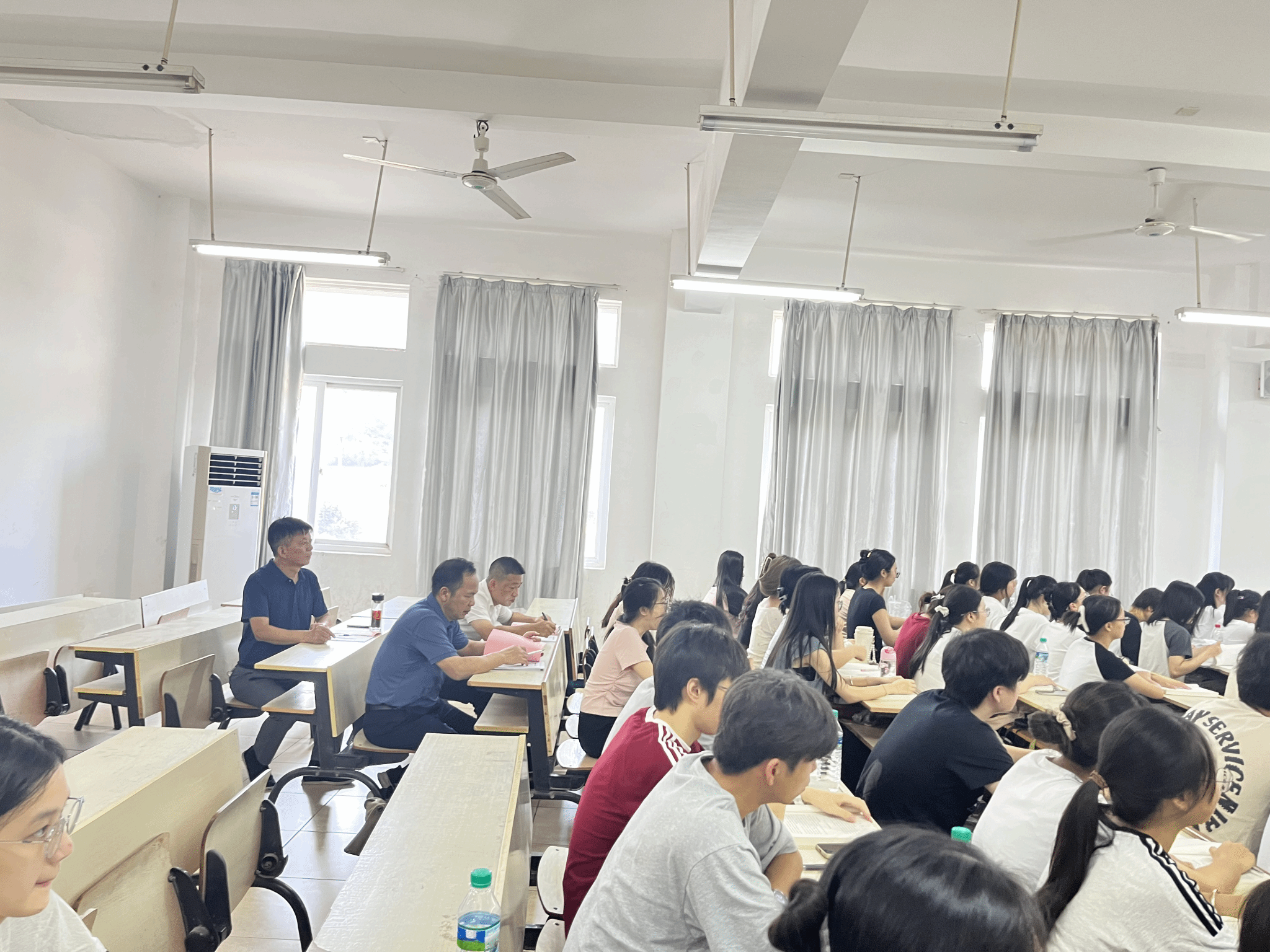 9月2日上午,陈文新、肖永鸿一行人来到主教Z113教室,旁听工商管理教研室郭信艳老师的《西方经济学》课程。课后,陈文新对课程上课情况提出改进建议。钟滨一行人来到主教Z204,旁听金融学教研室王瑞梅老师的《区域经济学》课程。