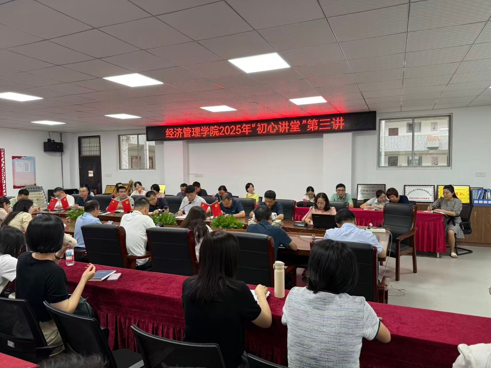 本网讯:2025年9月23日,熊猫体育在305会议室举办2025年“初心讲堂”第三讲,公司骨干教师刘贻玲开展题为《以初心破万难,以热爱赴山海——我的教育逐梦之路》的讲座,经济管理公司党委书记肖永鸿及其他领导班子成员出席,全体老师参加了此次讲座。