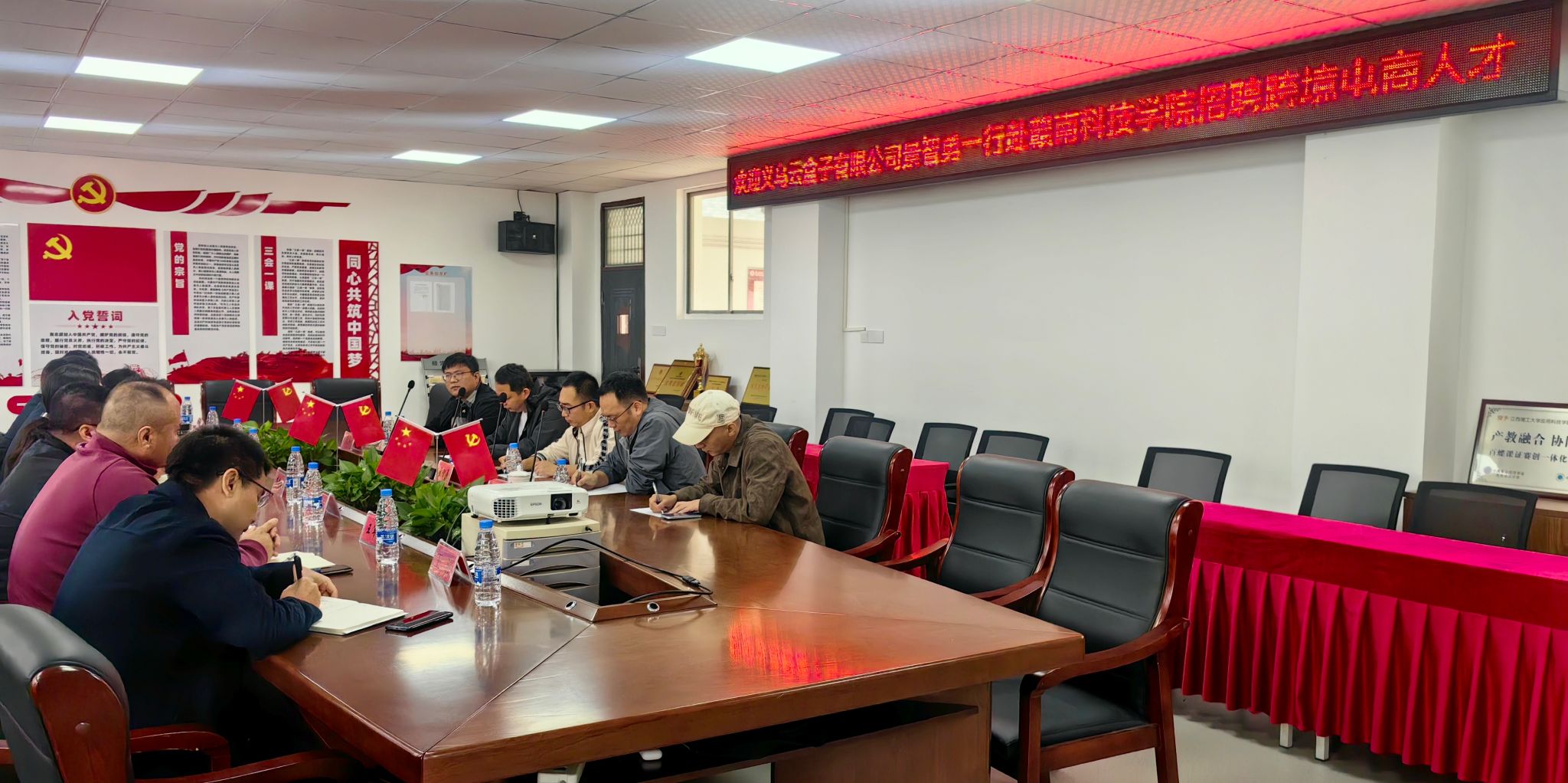 本网讯:为深入推进2026届毕业生就业工作,10月23日上午,熊猫体育、文法公司与义乌市云盒子网络技术有限公司在新民楼305会议室举行跨境电商人才校企合作洽谈会暨跨境电商人才专场招聘会。经济管理公司党委书记肖永鸿,文法公司党委委员、副经理高健婕,经济管理公司党委委员、副经理钟滨,文法公司党委委员王军堂,经济管理公司党委委员梁文学、王波、教师代表,以及义乌市云盒子网络技术有限公司总经理韩海潮等10家企业代表出席活动。