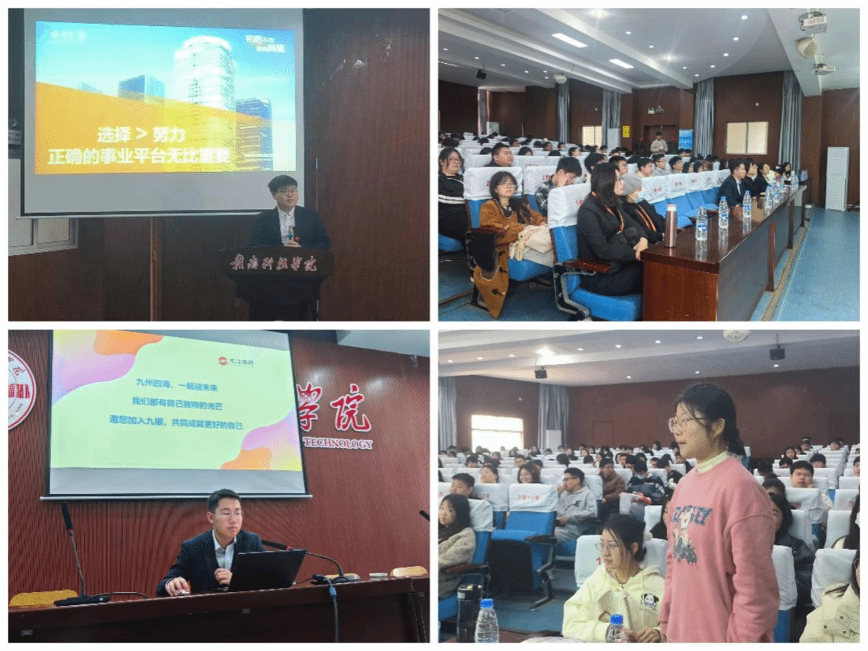 招聘会开始前,九江银行赣州分行、泰康养老保险赣州中心支公司、江西赣州银座村镇银行、中国人民财产保险赣州市分公司、中国邮政储蓄银行赣州市分行等金融机构在新民楼学术报告厅举办宣讲会。金融机构代表依次介绍公司状况、岗位设置、专业要求、薪资待遇等内容,并针对毕业生提出的应聘流程、发展空间、岗位要求等问题,一一给予回答。