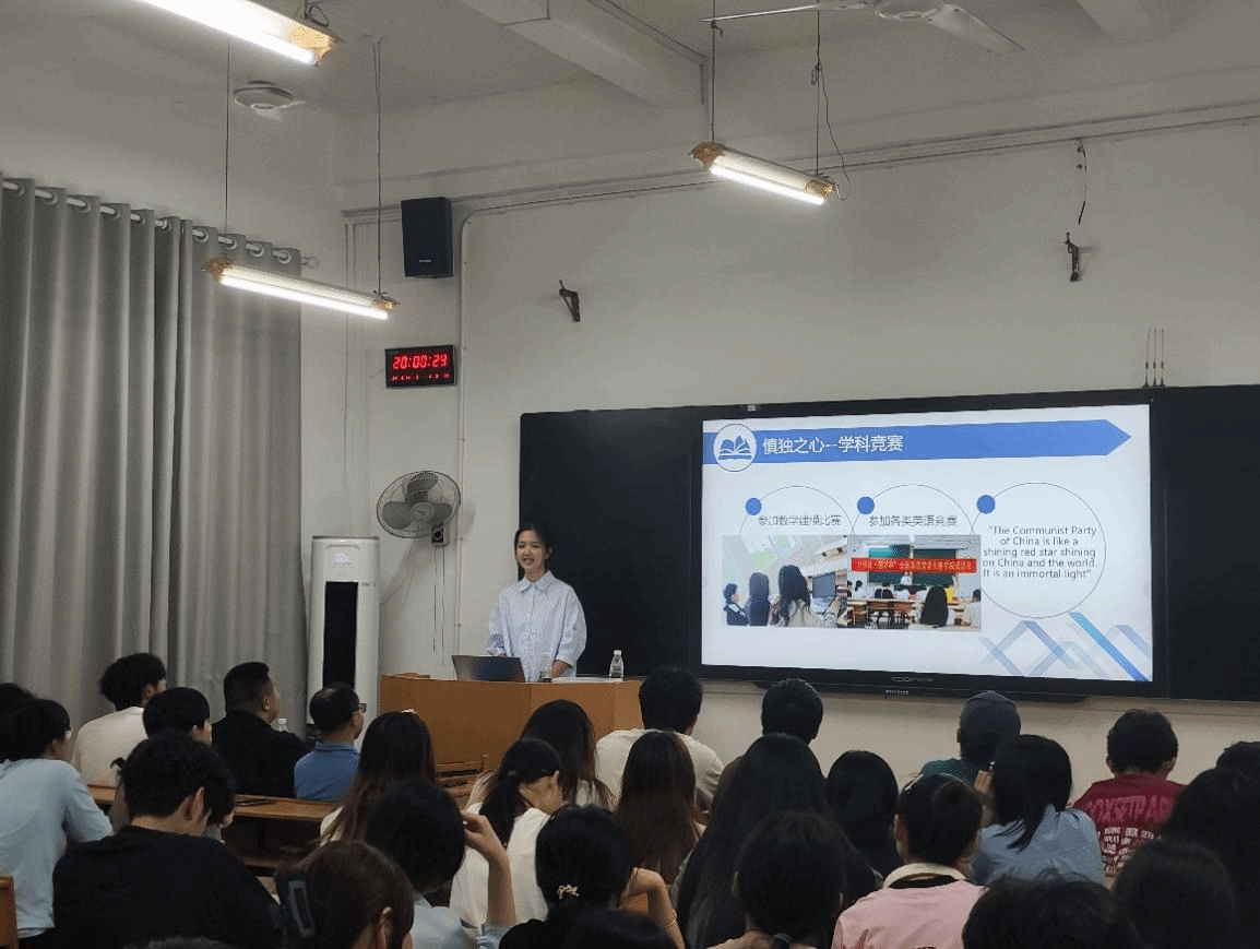 陈学龙从目标规划、专业学习、竞赛实践三个方面分享了自己的经验与体会。他结合自身的目标规划,生动讲述了有目标才有动力以及提前做好规划的重要性;在专业学习上,他介绍了如何培养独立思考的能力和高效考试复习方法;在竞赛实践上,他分享了如何广泛涉猎各类学科竞赛及在学科竞赛中的收获。倪靖则用泰然之心、慎独之心、悦己之心总结了大学四年的成长,分享了从“萌新”到“学姐”再到“毕业”的心路历程。她谈到,大学期间不仅是专业知识的积累,更重要的是作为一个人的成长,在观察和摸索中倾听自己内心的声音,追求自己的理想。