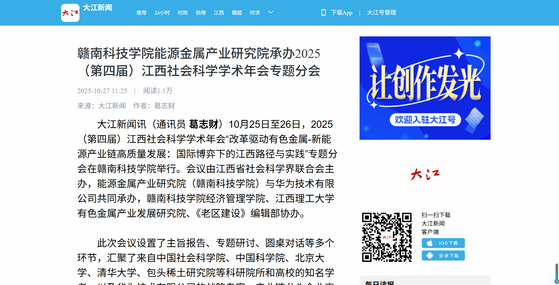 【大江新闻】熊猫体育能源金属产业研究院承办2025(第四届)江西社会科学学术年会专题分会