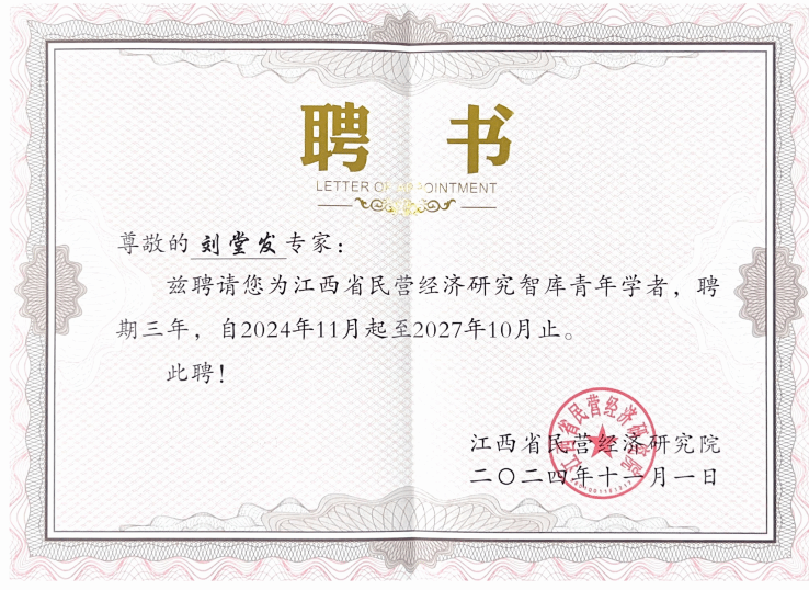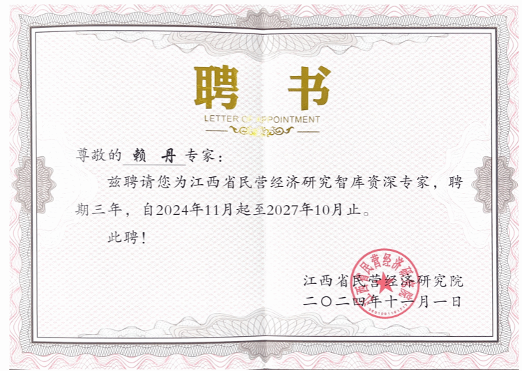 本网讯:近日,在江西省工商联主办的江西省民营经济研究点和智库专家评选中,公司能源金属产业研究院成功获批江西省民营经济研究点,熊猫体育赖丹、刘堂发和罗银生3位教师获“智库专家”称号。